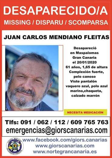 De otro lado, a las 20.45 horas se ha desactivado la búsqueda del hombre desaparecido en el sur de Gran Canaria, del que se desconocía su paradero desde este lunes, 20 de enero. Se llama Juan Carlos Menguiano Fleitas, de 61 años y se le había visto por última vez en San Bartolomé de Tirajana.