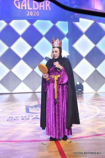 Alicia, Carmen Dolores, Luzmarina, , Rita, María del Mar, María José, Agustina, Justa, Natalia, Rosa María, Noemí y Estefanía, las Chicas del Garaje, ataviadas de Reinas del Corazón, fueron las encargadas de pregonar con mucha gracia y salero, las carnestolendas galdenses de 2020, y junto a ellas, en el corazón, estuvo la compañera María Dolores, miembro del grupo, que por motivos familiares, no pudo compartir con las amigas, la emoción de esta noche tan especial para ellas, según detalla Infonortedigital en su crónica del acto.