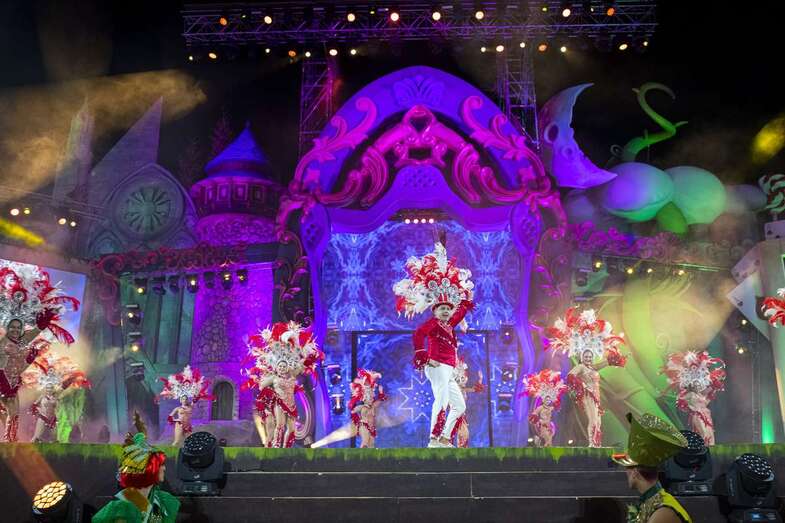 Una noche que también ofreció las actuaciones musicales de Don Patricio, que interpretó «Enchochado de ti» y su exitoso tema «Contando Lunares» y de las hermanas gemelas K-Narias, que hicieron sonar en el parque Santa Catalina «Llegó el Carnaval».