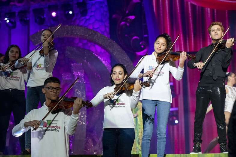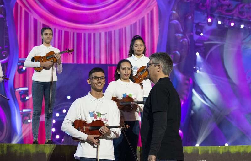 La parte emotiva de la velada corrió a cargo de los cuarenta niños de Barrios Orquestados que interpretaron «El vals de las flores», de Tchaikovsky, en una singular celebración de los 25 años de Carnaval en Santa Catalina, efeméride que contó con un guiño a la primera monarca coronada en el parque: Sandra Soto Martín (Reina del Carnaval 1995) y, como no podía ser de otra forma, también a la reina saliente, Erika Echuaca. Ambas bailaron «El vals de la reina» junto con la pareja canaria de acróbatas Estrella y Levy, finalistas de la última edición de Got Talent.