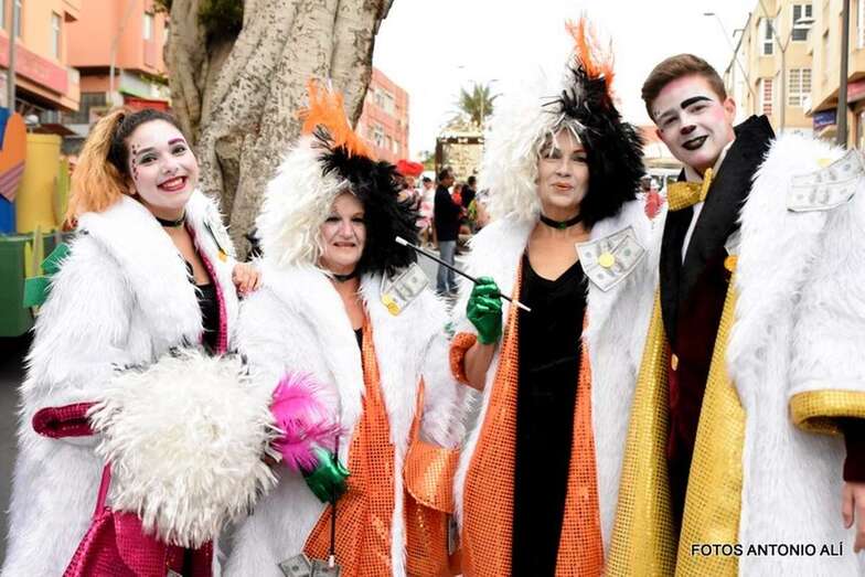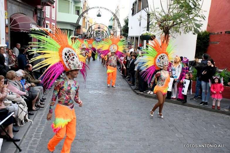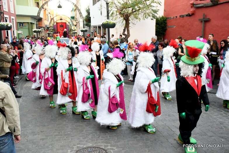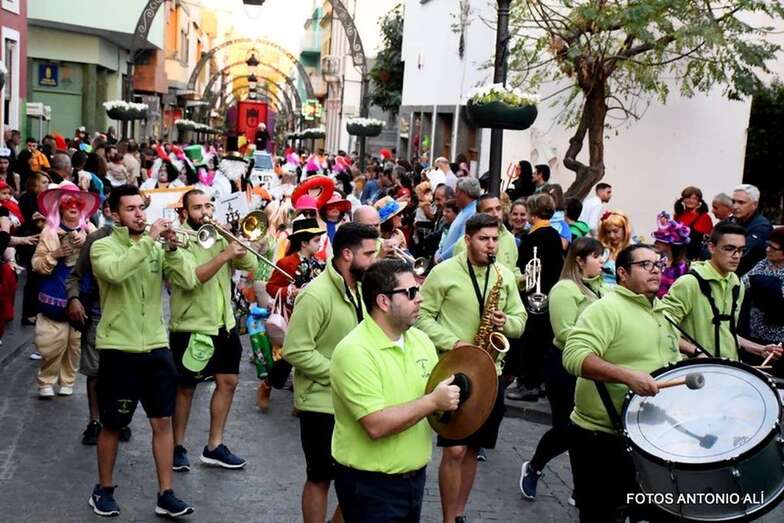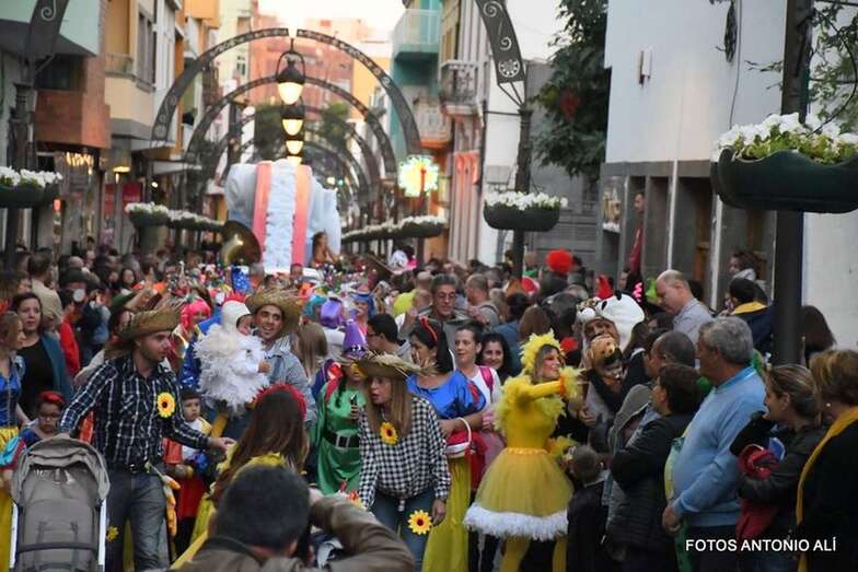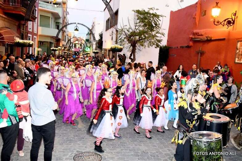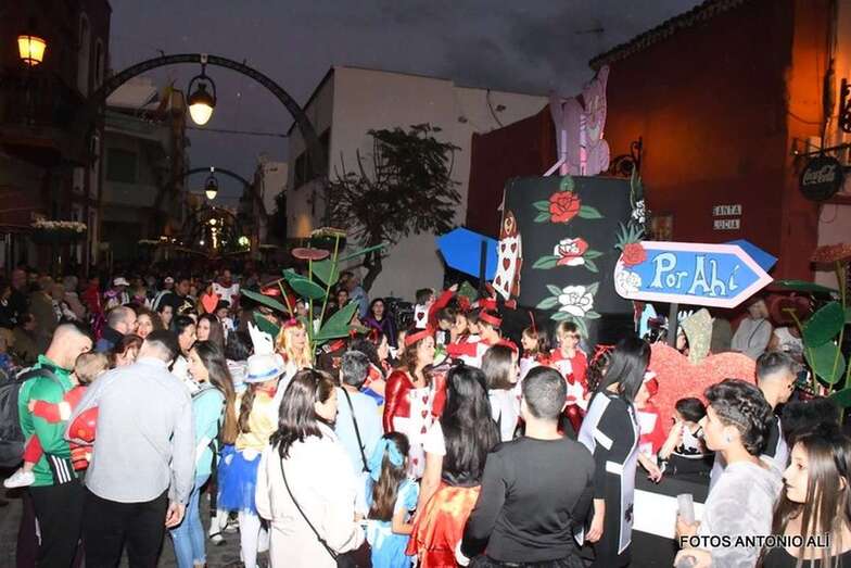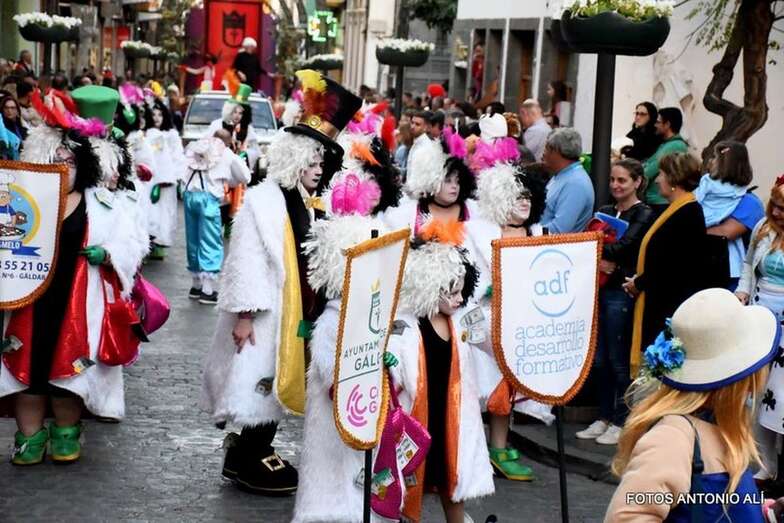Telde.- El casco de Gáldar se transformó este viernes por la tarde, en un gran y carnavalero libro de cuentos, con los personajes bailando en la calle y disfrutando de la cabalgata de las carnestolendas galdenses.