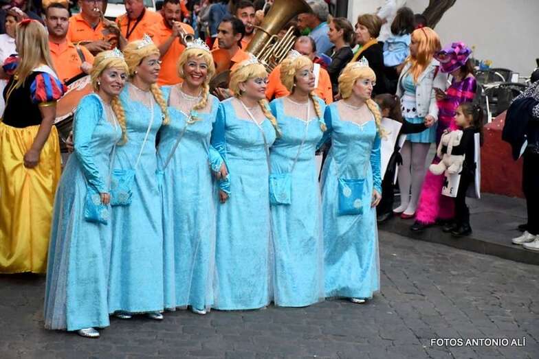 Caperucitas Rojas y lobos carnavaleros, hadas, sombrereros locos, Alicias en el país de las maravillas, Blancanieves y madrastras, Maléficas, princesas y príncipes, Reinas de Corazones, piratas y campinitas, campearon a sus anchas por el casco galdense, gozando del carnaval de los cuentos y fábulas, según informa infonortedigital.