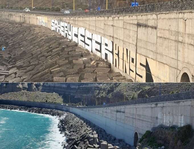 Las Palmas de Gran Canaria.- El Cabildo de Gran Canaria ha culminado la eliminación de 861 grafitis que jalonaban la GC-1 y GC-2 con una inversión de 327.000 euros y los grafiteros han vuelto a pintar 105 en las zonas ya restauradas, por lo que la Institución insular ha decidido emprender acciones judiciales por atentar contra el patrimonio público.