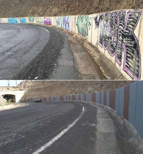 La retirada de grafitis y la limpieza de residuos y escombros forman parte de la ejecución de los Proyectos Directores de Regeneración Paisajística de la GC-1 y GC-2 del Cabildo, que precisan una inversión de 38 millones en los próximos años.
