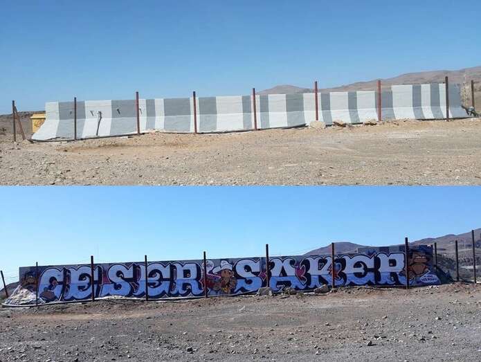 Y hay una nueva pintada que ha molestado especialmente, ya que los grafiteros dan las gracias por preparar los muros para volverlos a pintar, lo que la consejera consideró un insulto porque se trata de una inversión pública importante para mejorar el paisaje y porque las pintadas solo causan daño, ya que no se las puede considerar obras de arte y no aportan ningún beneficio a la convivencia.