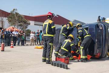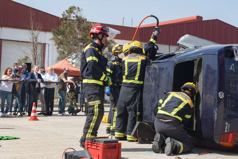 Telde.- Suena una sirena y aparece en escena un camión amarillo del Consorcio de Emergencias de Gran Canaria. Sobre el asfalto, restos de un accidente: dos vehículos y una víctima atrapada. El mando valora la situación y, con la víctima inmovilizada, arranca la coreografía. Un equipo estabiliza los vehículos, otro irrumpe con sierras y cizallas y, en segundos, aparece un hueco sobre la luna trasera del coche. Entonces, se introduce una camilla y la víctima sale de su encierro entre aplausos.