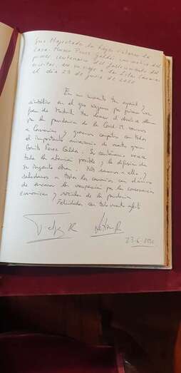 "En un momento especial y simbólico en el que viajamos por primera vez fuera de Madrid tras decaer el decreto de Alarma por la pandemia de la Covid-19, venimos a Canarias y queremos compartir con todos el importante aniversario del nuestro gran Benito Pérez Galdós", han escrito los reyes en el libro de visitas de este museo literario.