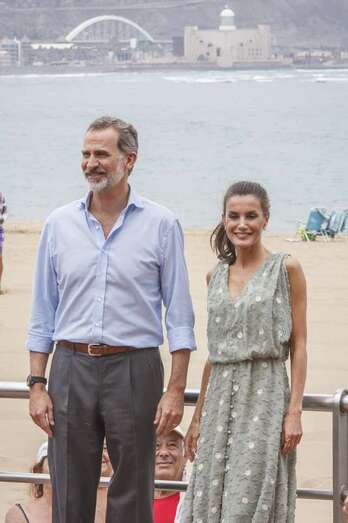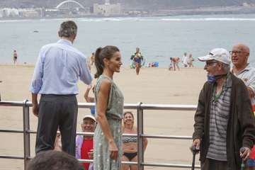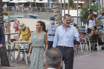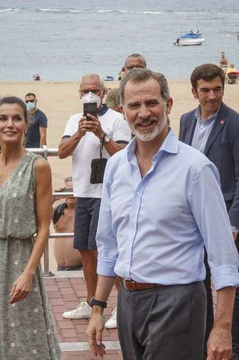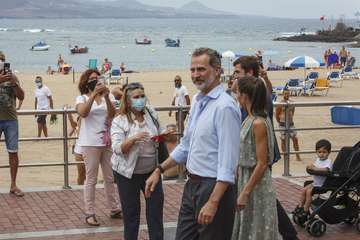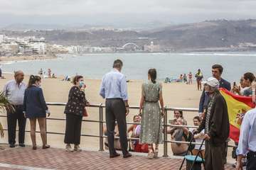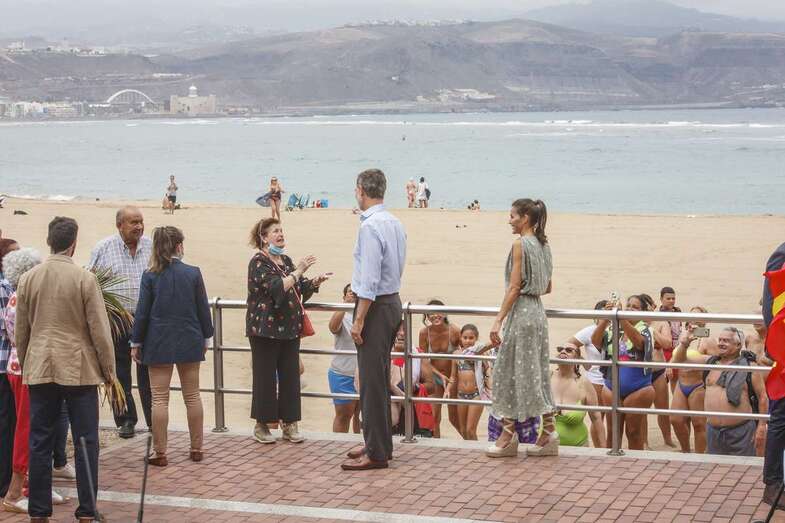 Tras su visita a la casa-museo del novelista canario, los reyes recorrieron parte del paseo de la playa de las Canteras y mantendrán una reunión con empresarios del sector turístico para conocer su situación.