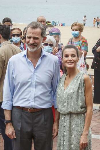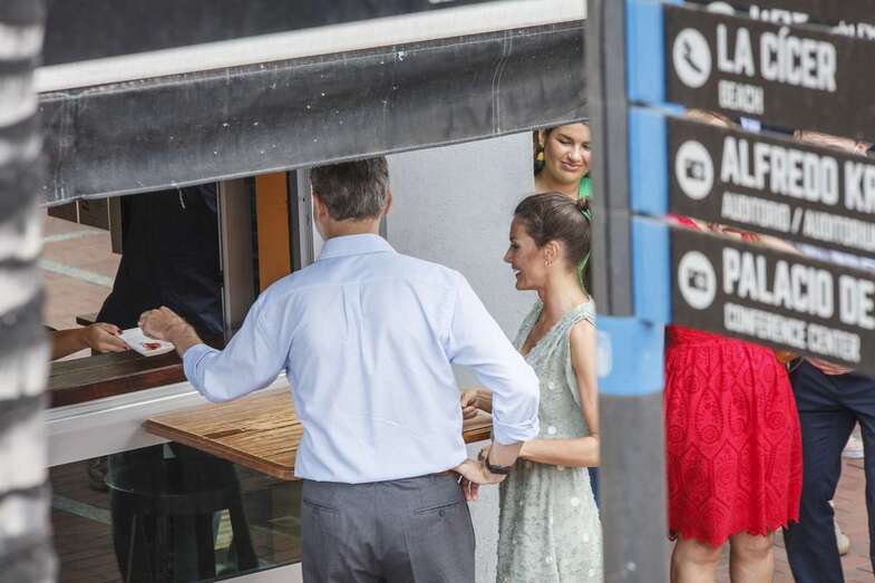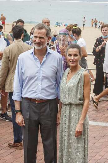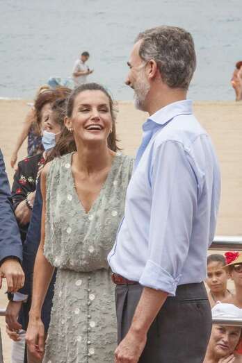 Don Felipe y doña Letizia se pararon unos instantes a la entrada de la casa y saludaron a las decenas de personas que les vitoreaban desde las vías aledañas y los balcones de esa calle del centro histórico de la ciudad, incluso también a un grupo que presenciaba la escena en primera línea, desayunando en la terraza de una cafetería.