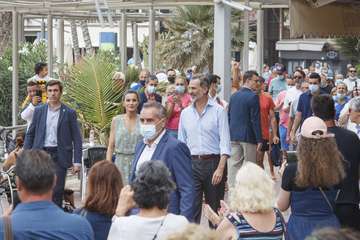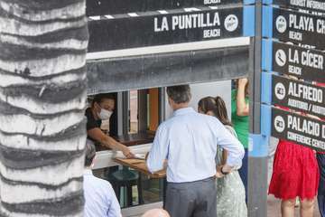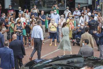 Han saludado a algunas de esas personas guardando la distancia de seguridad recomendada por las autoridades sanitarias y en ese momento sin la mascarilla que preveían utilizar en el interior del museo.