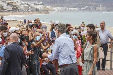 El apoyo a instituciones de todo tipo ante las consecuencias de la COVID-19 es el objetivo principal de la gira que los reyes han iniciado en esta jornada en Las Palmas de Gran Canaria.