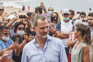 Los reyes han llegado acompañados por la ministra de Política Territorial, Carolina Darias, y han sido recibidos por el presidente de Canarias, Ángel Víctor Torres, y el alcalde de Las Palmas, Augusto Hidalgo.