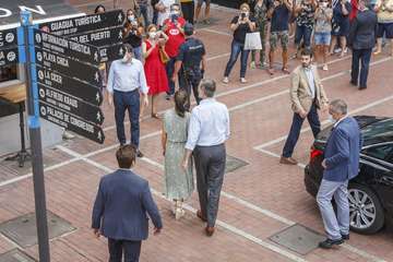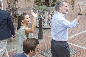 Felipe VI y doña Letizia llegaron a media mañana a la base militar de Gando, en Gran Canaria, y se han trasladado directamente a una de las calles del centro de la ciudad para llegar a pie a la casa-museo de Galdós.