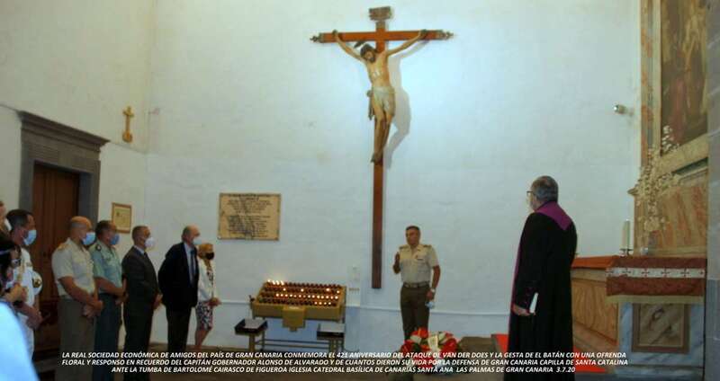 En conmemoración del 421 Aniversario del ataque de Van der Does y la Gesta de El Batán, la Real Sociedad Económica de Amigos del País de Gran Canaria, Decana de las de Canarias, ofreció una ofrenda floral y responso en recuerdo del Capitán Gobernador Alonso de Alvarado y de cuantos dieron su vida por la defensa de Gran Canaria. Acto celebrado a las 08:45 de la mañana del viernes 3 de julio en la Capilla de Santa Catalina, ante la tumba del Sacerdote Canónigo Bartolomé de Cairasco de Figueroa, en la Catedral de Canarias.