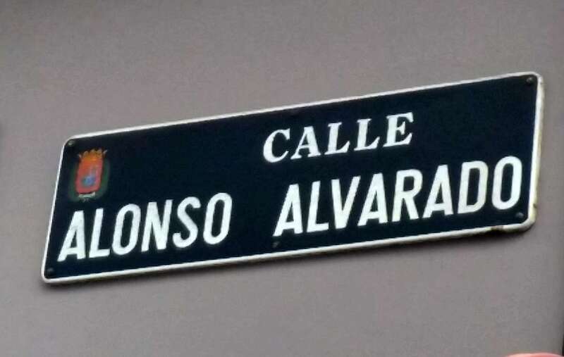 En el monumento monolito de piedra roja ubicado en la trasera del Castillo de Mata, al pie de la Cuevas del Provecho, dedicado a la figura del Capitán Gobernador Alonso de Alvarado, grabado sobre su frontal se lee: