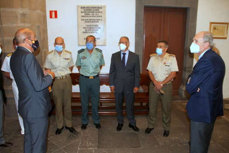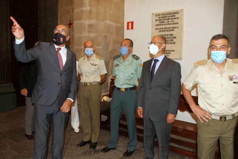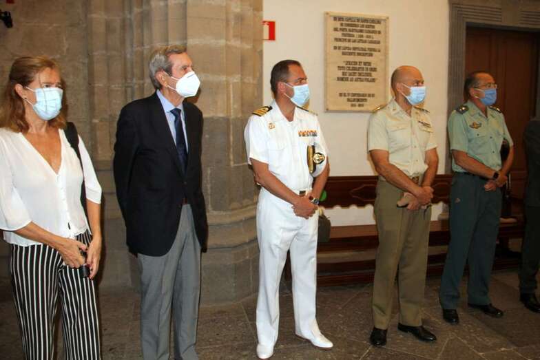 Se inicia el acto conmemorativo con la intervención del director de la Real Sociedad Económica de Amigos del País de Gran Canaria, Excmo. Sr. D. Tomás Van de Walle Sotomayor Marqués de Guisla Ghiselín. Ofrece el responso el Sacerdote Deán de la Santa Iglesia Catedral Basílica de Canarias Santa Ana, D. Nicolás Monche López. El General Jefe de la Brigada Canarias XVI y Comandante Militar de la Provincia de Las Palmas, Excmo. Sr. D. Ramón Armada Vázquez, expone la importancia del hecho histórico que se conmemora en este día.
