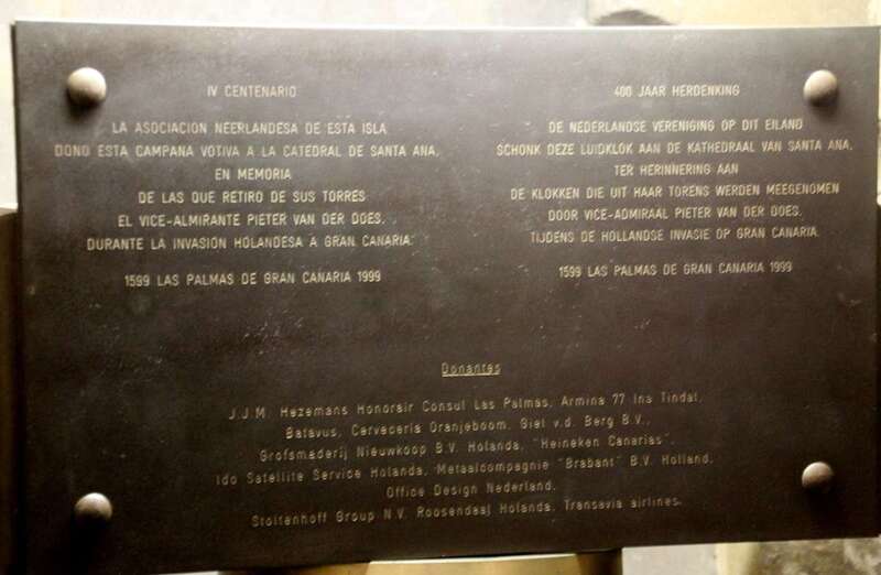 A la entrada de la Catedral un espacio reservado muestra una campana votiva que en el IV Centenario de este ataque, 1599-1999, la Asociación Neerlandesa de la isla donó a la Catedral de Santa Ana, en memoria de las que retiró de sus torres el almirante Pieter Van Der Does durante la invasión holandesa a Gran Canaria.