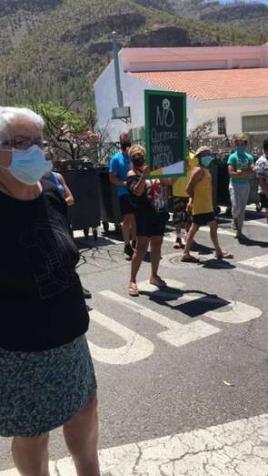 La concentración se ha convocado a través de redes sociales, mensajes de whatsapp y llamadas telefónicas, después de que llegara a la localidad la noticia de que la Delegación del Gobierno iba a trasladar allí a un grupo de inmigrantes subsaharianos en cuarentena que llegaron a la isla hace tres días, el pasado domingo.