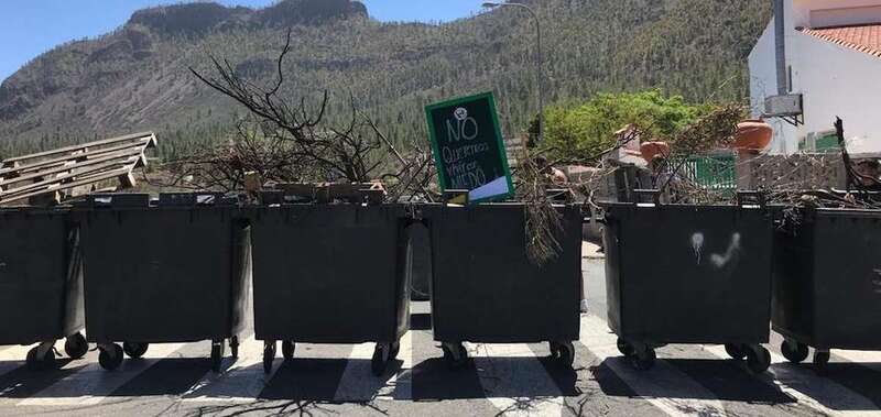 Según ha presenciado Efe, decenas de vecinos de este pueblo, de 596 habitantes, mantienen a las 20.00 horas cortada la calle que da acceso a la residencia con contenedores de basura, depósitos de reciclaje de cartón y vidrio, ramas y restos de poda.