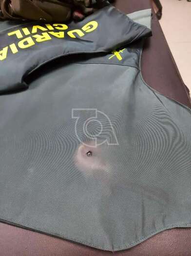 Los agentes desplazados al lugar detectaron a un individuo ocultándose detrás de un árbol. Cuando fue requerido por los miembros de la Benemérita, sacó un arma de fuego (un revólver) y efectuó tres disparos. Uno de ellos impactó en el chaleco de un agente, otro le atravesó una pierna, con orificio de entrada y salida a la altura del muslo, y un tercero que no alcanzó a los policías.