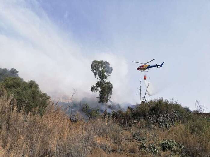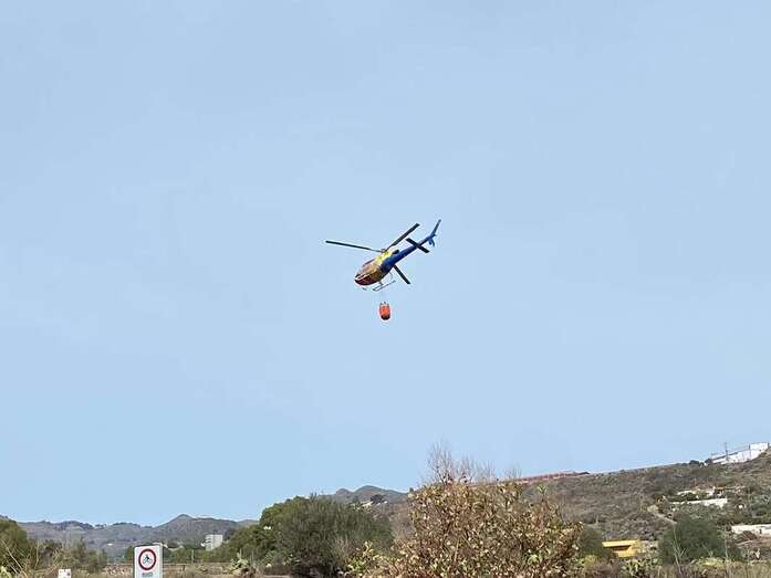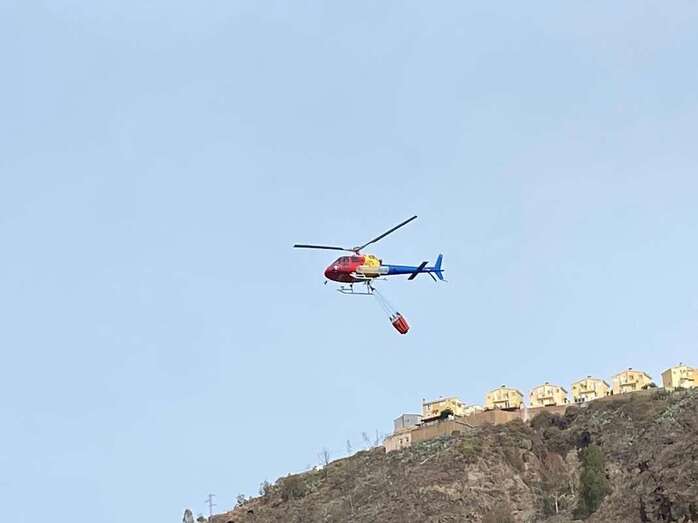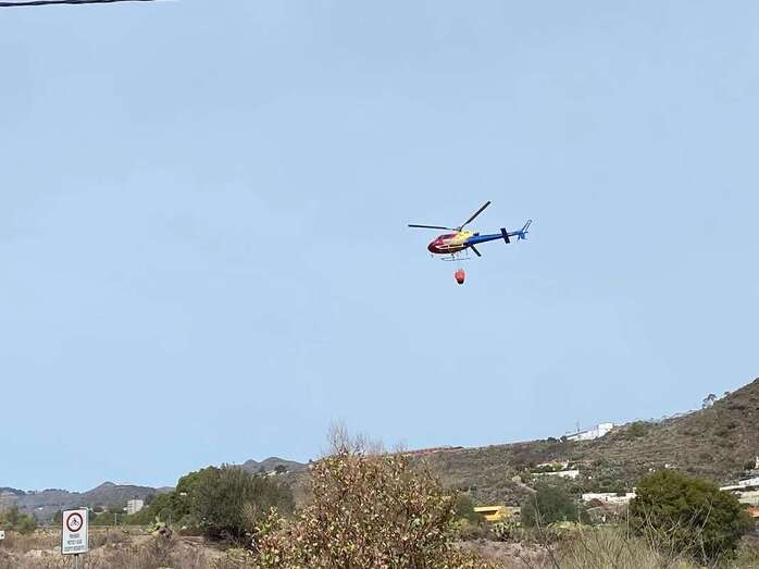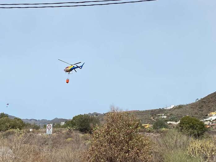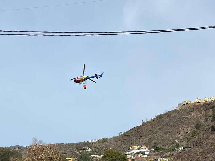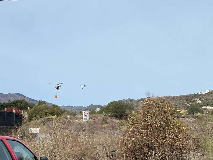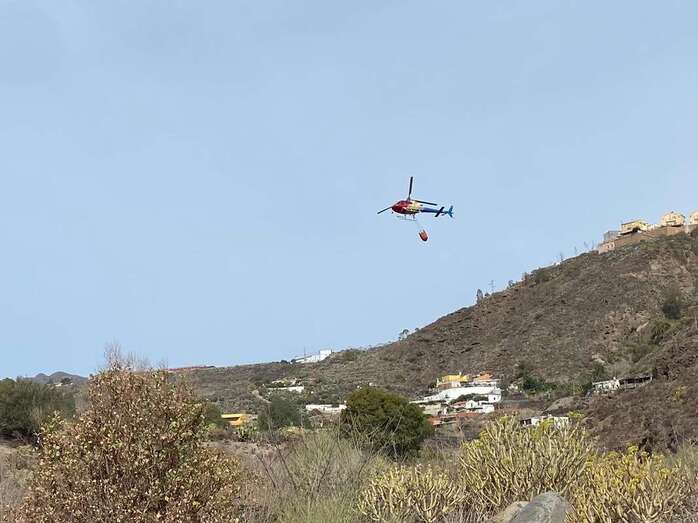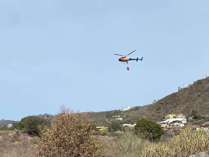 Una vez estabilizado, los medios aéreos (los dos helicópteros contraincendios de los que dispone el Cabildo) y terrestres (efectivos de Medioambiente de la Institución insular y también bomberos del Consorcio de Emergencia desplazados desde Telde) se centran ahora en las labores de liquidación del fuego.