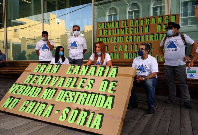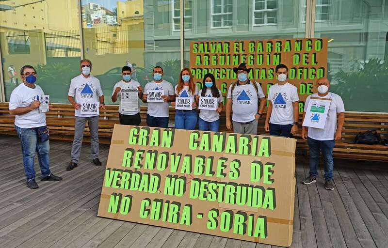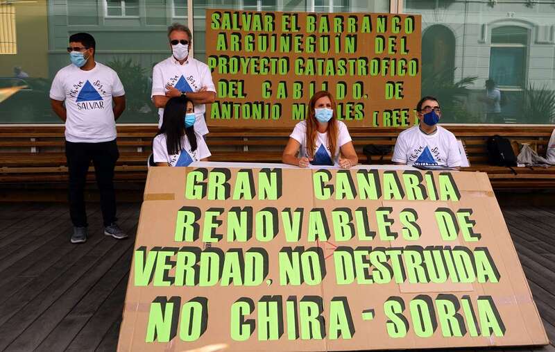 Telde.- La plataforma ciudadana "Salvar Chira-Soria, barranco de Arguineguín" ha protagonizado este martes un acto a las puertas del Cabildo de Gran Canaria, con el fin de iniciar un debate con la corporación y parar el proyecto para la construcción de la central hidroeléctrica en el suroeste de la isla.