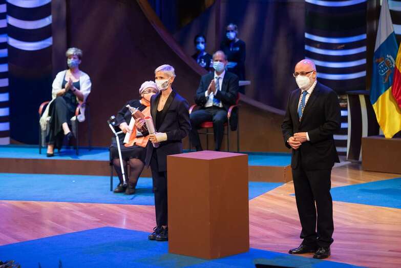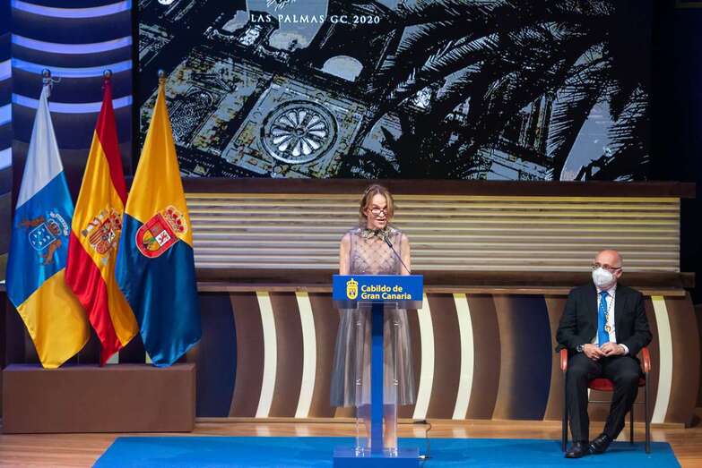 Seguramente ha sido mi carrera como actriz la que ha pesado para encontrarme entre los nombres de las personas y entidades galardonadas en este acto. Esta noche, además, tengo el honor de hablar en nombre de todos los homenajeados, créanme, es difícil encontrar las palabras exactas para expresar lo que este momento significa para mí, y además es una gran responsabilidad hablar en nombre de tan ilustres personas y entidades que han tenido el gran honor de recibir este homenaje, 22 premios a personas, colectivos e instituciones galardonadas con los Honores y Distinciones del 2020. Todos nosotros lo recibimos con gran humildad y conscientes de los importantes méritos de quienes nos han precedido en esta distinción. Con todos ellos comparto el intenso cariño que tenemos por nuestra tierra y nuestras islas. Islas repletas de hijos ilustres.