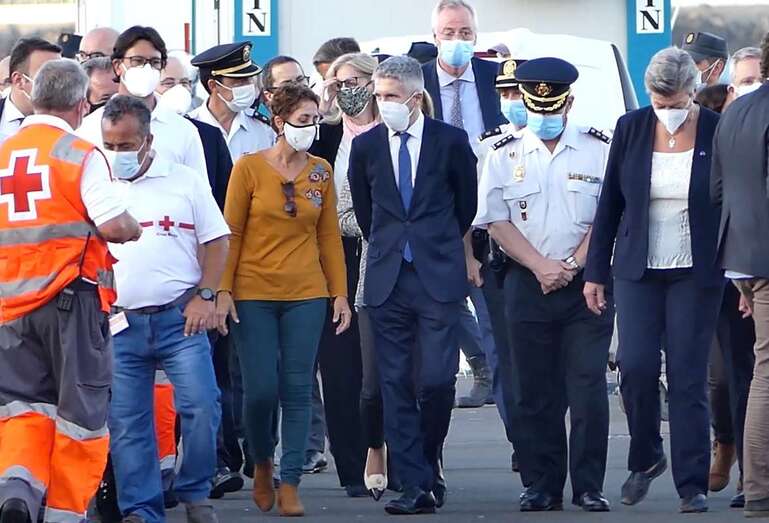 El anuncio lo ha realizado el ministro durante la visita que realiza este viernes a las islas acompañado de la comisaria europea de Interior, Ylva Johansson, para conocer el detalle de la situación y proponer medidas de respuesta, una visita en la que están acompañados por el presidente canario Ángel Víctor Torres. Marlaska, durante la rueda de prensa, ha insistido en la importancia de reforzar la cooperación internacional con los países de origen y en la necesaria implicación de Europa.