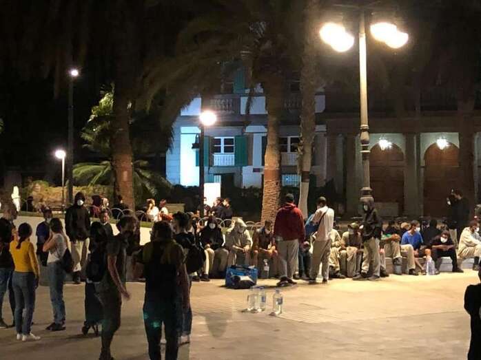 Inmigrantes en la plaza de La Feria, en la capital grancanaria/TA. Inmigrantes en la plaza de La Feria, en la capital grancanaria/TA.
