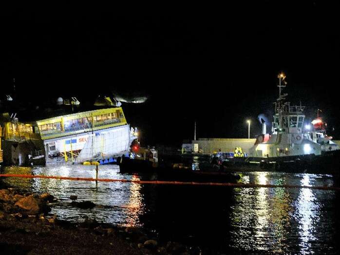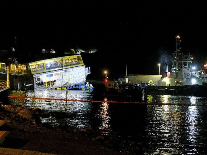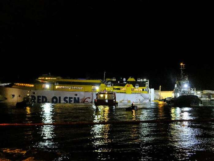 Fred Olsen Express trabaja ahora en la evaluación de los daños del casco y en incrementar la estabilidad.