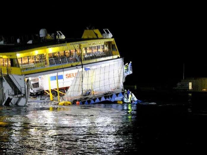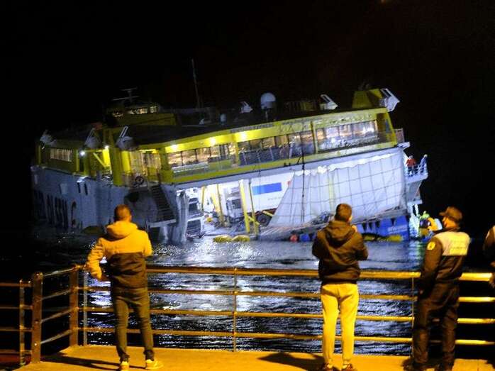 En ese momento, iban a bordo 59 pasajeros y 16 tripulantes, que tuvieron que esperar 15 horas, hasta la mañana siguiente, para que se dieran las condiciones de seguridad adecuadas para que pudieran transbordarlos a un barco de Salvamento Marítimo, que los transportó al muelle, situado a escasos metros de distancia.