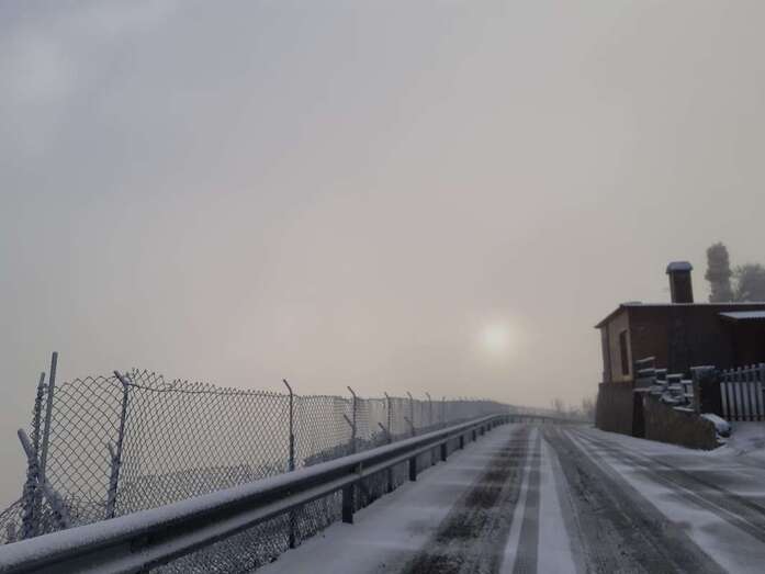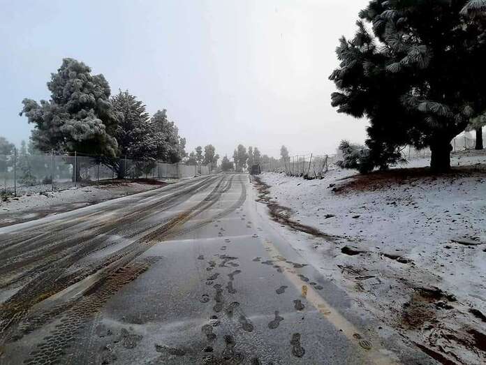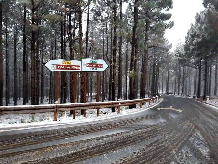Telde.- La cumbre grancanaria amaneció este viernes teñida de blanco. El temporal ha obligado a cerrar al tráfico la GC-130 en Cazadores y la GC-134 y GC-135, en San Mateo.
