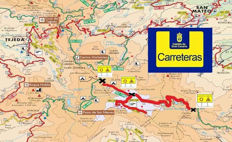 Por ahora, se mantienen operativas la GC-150 en la Cruz de Tejeda y la GC-600 hasta Ayacata.