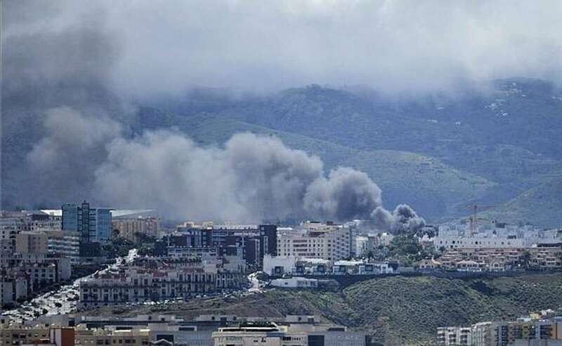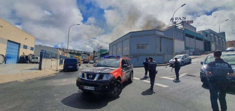 La columna de humo del incendio es visible desde varios kilómetros de distancia. Al lugar han acudido también agentes de la Policía Local de Las Palmas de Gran Canaria y de la Policía Nacional.