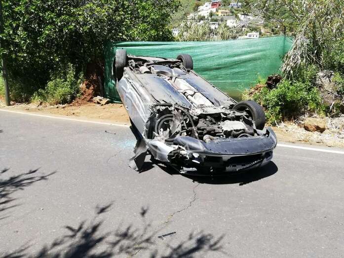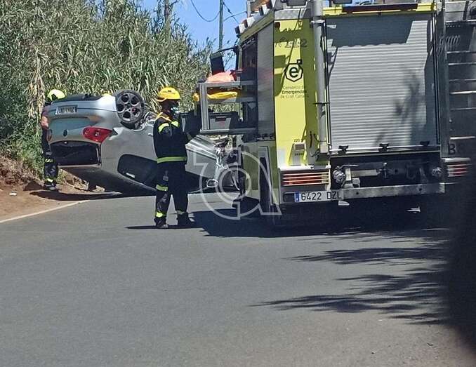 Un vehículo turismo volcó de forma aparatosa, aunque, según el Centro Coordinador de Emergencias y Seguridad 112 del Gobierno de Canarias no hubo que lamentar heridos.
