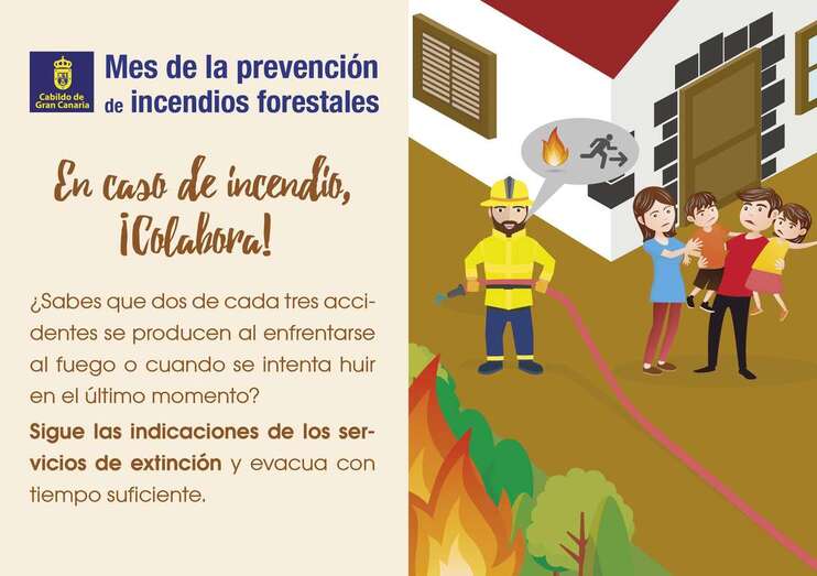 También serán distribuidos 25.000 ejemplares del cómic Gran Canaria y la prevención de los incendios forestales del humorista gráfico Morgan en el que su protagonista, la pequeña Flora, explica el funcionamiento de los servicios públicos, la normativa y los protocolos en caso de emergencia, como obedecer las indicaciones siempre, no quedarse por ejemplo a humedecer la casa tras una orden de evacuación, pues el fuego desecará esa agua y la quemará igualmente si no estaba limpia de maleza, así que es arriesgar la vida para nada, las medidas hay que tomarlas ahora, en mayo.