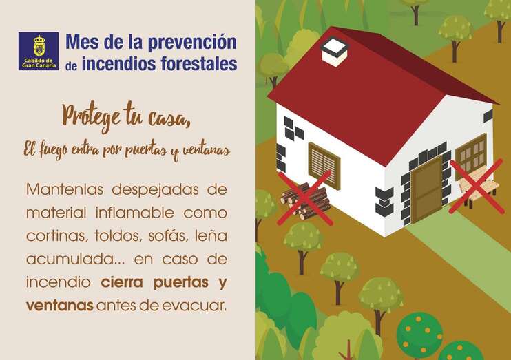 Telde.- El Cabildo lanza la campaña Mayo: mes de la prevención de los incendios forestales para concienciar sobre la importancia de despejar de vegetación combustible fincas y alrededores de viviendas rurales antes de que llegue el verano, pues mayo es la última oportunidad para prevenir incendios en Gran Canaria.