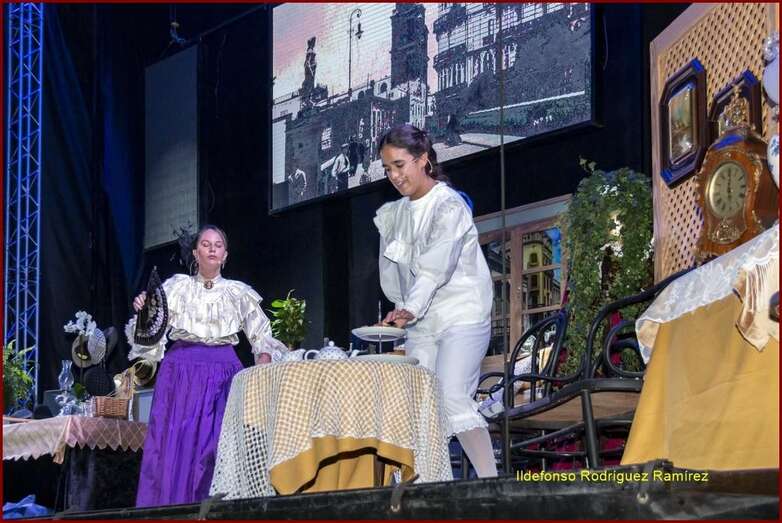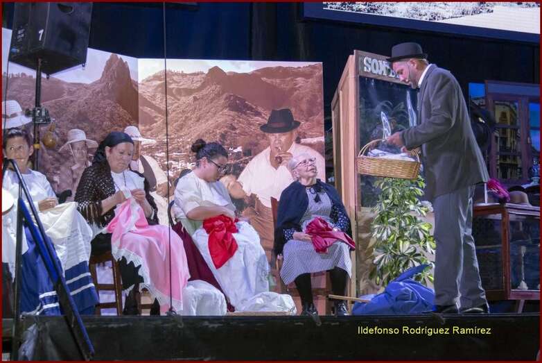 La representación teatral rescata algunos de los oficios, costumbres y tradiciones de la época relacionados con el mundo de las telas (costureras, bordadoras, caladoras sombrereros, vendedores ambulantes de tela y cambulloneros), con motivo del 500 aniversario de la influencia británica en Gran Canaria.