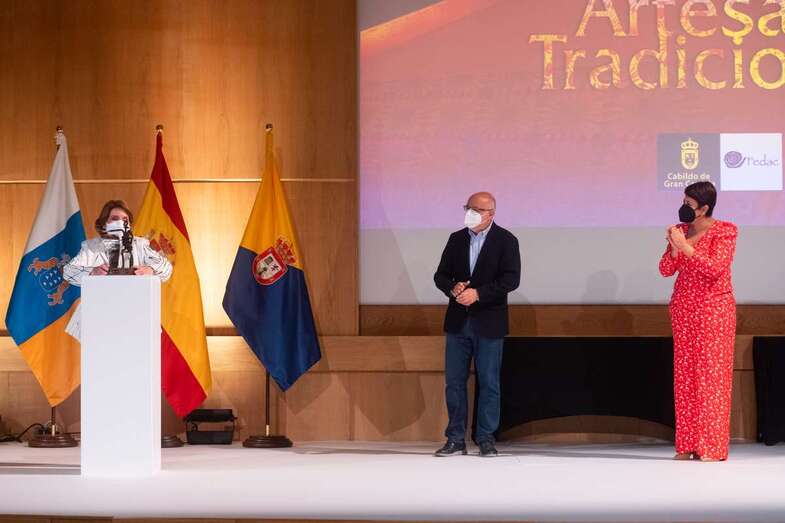 El Cabildo de Gran Canaria ha querido rendir homenaje, en un acto celebrado en el recinto ferial de Infecar y presentado a golpe de verso por Yeray Rodríguez, a las artesanas que durante años, formando parte de instituciones públicas, de asociaciones o colectivos, o a nivel particular “han logrado que los conocimientos y saberes asociados al oficio artesano más internacional de Canarias, el calado, no se haya perdido y que se siga ejerciendo hoy en día gracias a una labor activa de formación, de difusión y de investigación, recogiendo todos aquellos puntos de calado que llegaban a sus escuelas”, en palabras del presidente de la Institución insular, Antonio Morales.