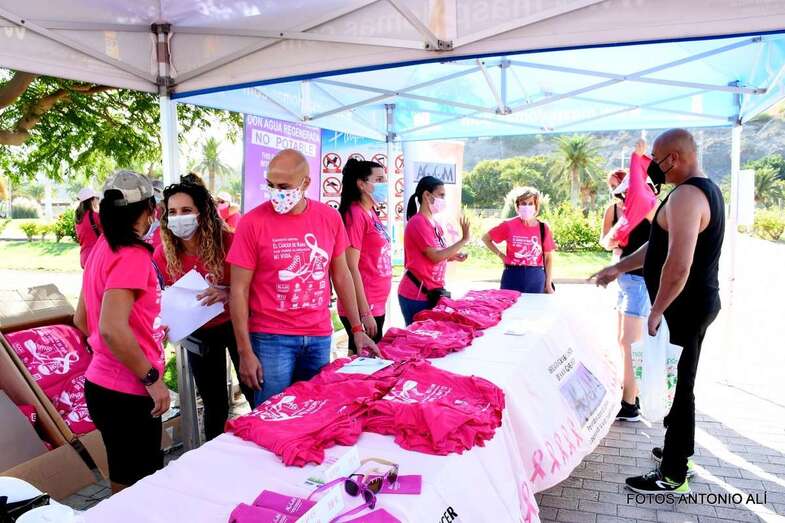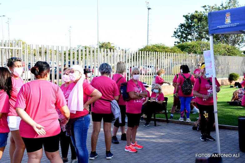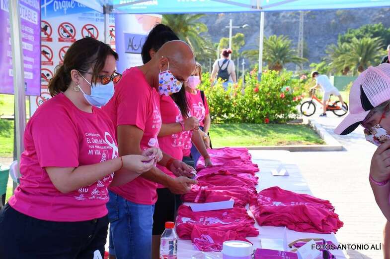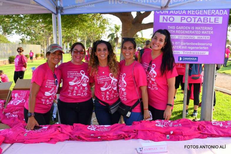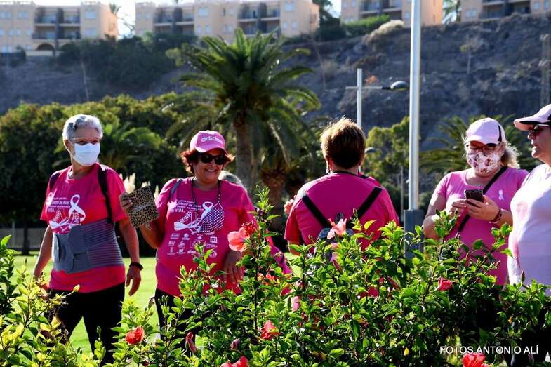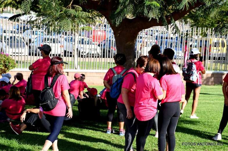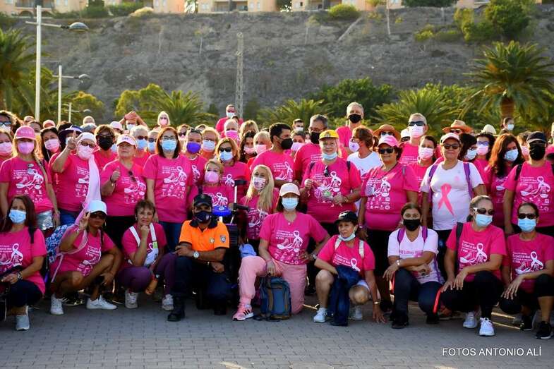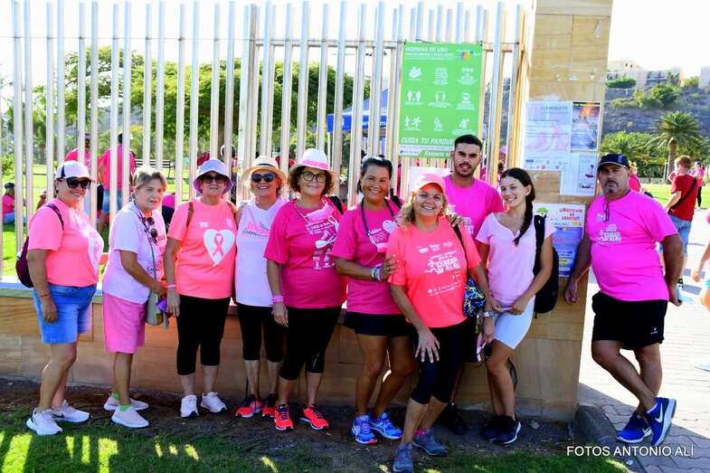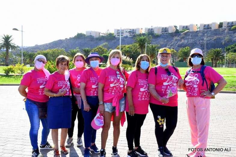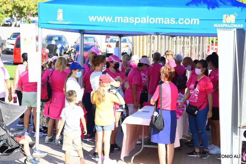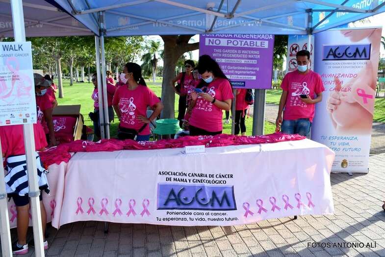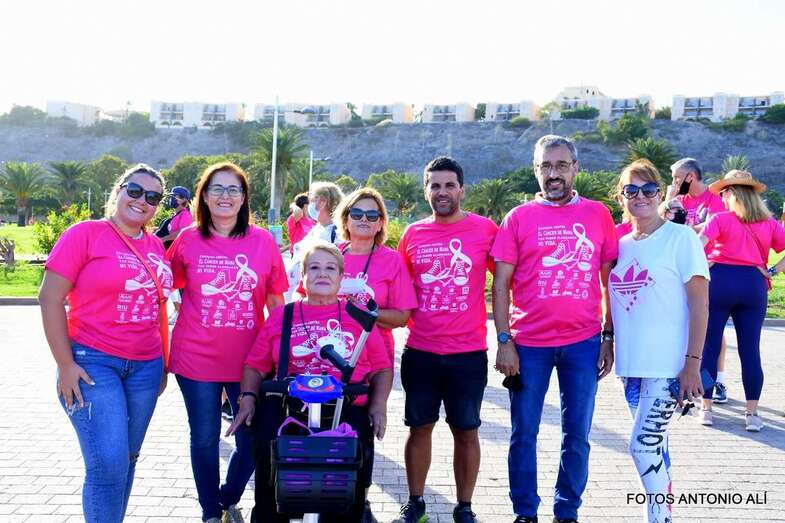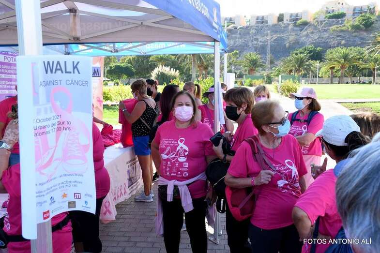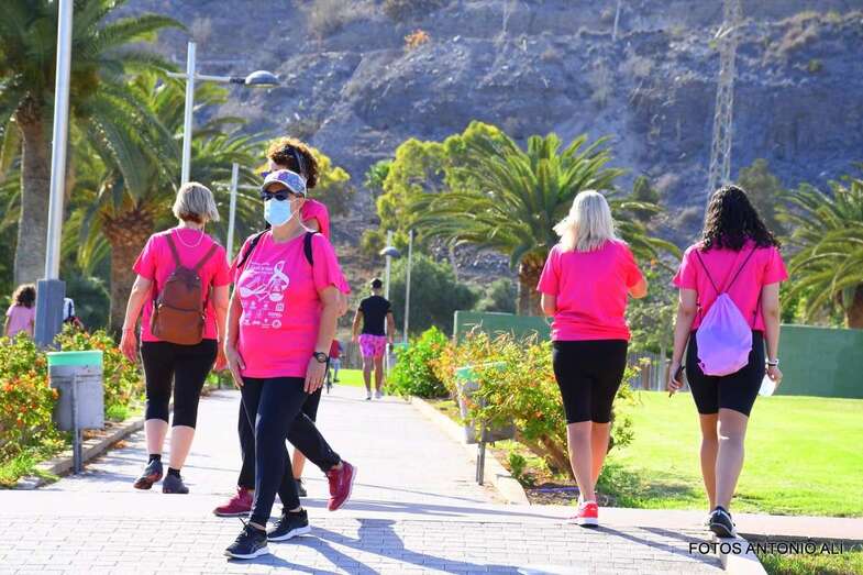 La marcha promovida por la Asociación Canaria de Cáncer de Mama y Ginecológico contó con la colaboración del Ayuntamiento de San Bartolomé de Tirajana. Una vez más, el Parque Urbano del Sur fue escenario de la concentración inicial y punto de salida de esta caminata de 7 kilómetros de recorrido y con llegada en el Faro de Maspalomas.