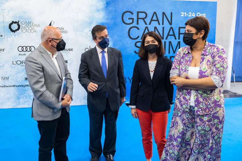 Las últimas novedades de Gran Canaria Swim Week by Moda Cálida se han dado a conocer de la mano del presidente del Cabildo de Gran Canaria, Antonio Morales; la consejera de Industria, Comercio y Artesanía del Cabildo de Gran Canaria, Minerva Alonso; el director general de IFEMA MADRID, Eduardo López-Puertas; y la directora de la pasarela, Nuria de Miguel.