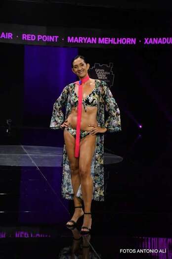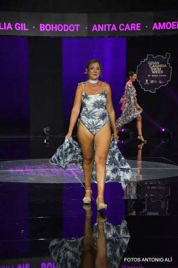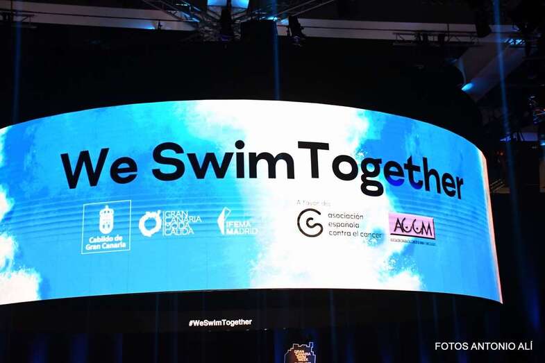 Este martes, con motivo del Día Internacional del Cáncer de Mama, ha tenido lugar, en el recinto de ExpoMeloneras en Maspalomas, el desfile benéfico We Swim Together (Nadamos Juntas), dentro del marco de acciones especiales de Gran Canaria Swim Week by Moda Cálida.