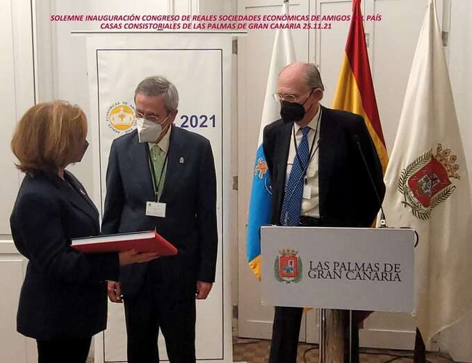 Toma la palabra Don Tomás Van de Walle Sotomayor, director de la Real Sociedad Económica de Amigos del País de Gran Canaria, anfitriona de este Congreso, expone:
