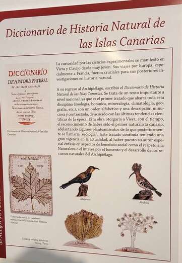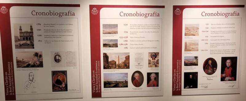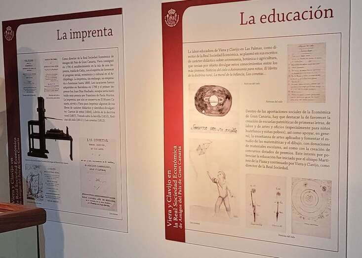 La exposición se complementa con una muestra de obras, cartas y escritos de Viera y Clavijo y de una serie de murales que facilitan el seguimiento de la exposición, destacando en sus textos la información destinada a la Educación. La imprenta. Diccionario de Historia Natural de las Islas Canarias. Dirección de la Real Sociedad Económica de Amigos del País de Gran Canaria. Las aguas agrias de Telde. Las aguas agrias de Teror. La industria textil y el carbón. Cronobiografía.