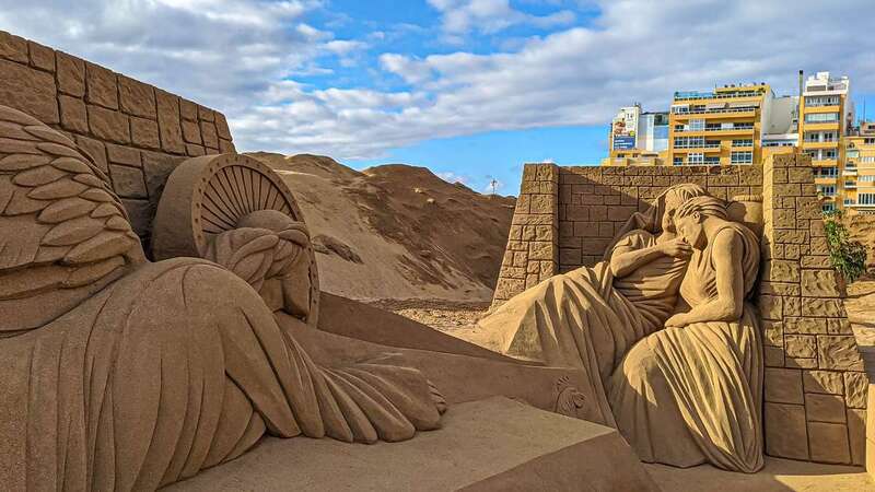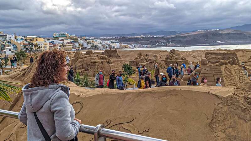 El recorrido por los 1.500 metros cuadrados sobre la arena se realiza en sentido circular para mantener las distancias de seguridad sanitaria. Las escenas han sido modeladas por 10 escultores de 8 países: Rodrigo César de Magalhaes (Portugal), Johannes Christolfel (Holanda), Sanita Ravina (Letonia) Guy-Oliver Devenueau (Canadá), los artistas canarios Paco Arana y Bentejuí Ojeda, Fergus Mulvany (Irlanda); Karen Jean Fralich (Canadá) y Sue Mac Greu (EEUU).