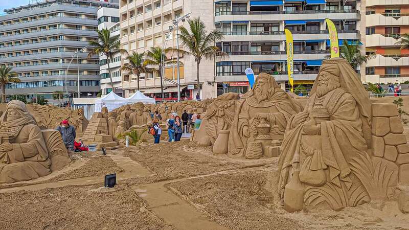 El Belén de Arena de Las Palmas de Gran Canaria recibió durante el puente de diciembre a más de 20.000 personas. El Ayuntamiento capitalino destaca que el público ha vuelto a avalar el atractivo de este recurso navideño, que celebra su 16 edición con una propuesta artística que suma a las tradicionales escenas navideñas un homenaje a la isla de La Palma y un guiño especial al Auditorio Alfredo Kraus.