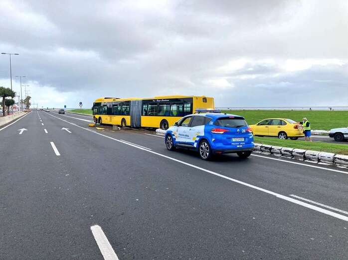 Al parecer, el transporte público se salió de la vía y se subió a la mediana en la incorporación a la avenida marítima desde la GC-31 a la altura de Ley Harimaguada.