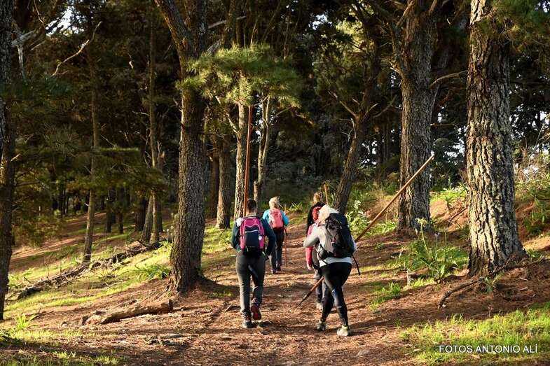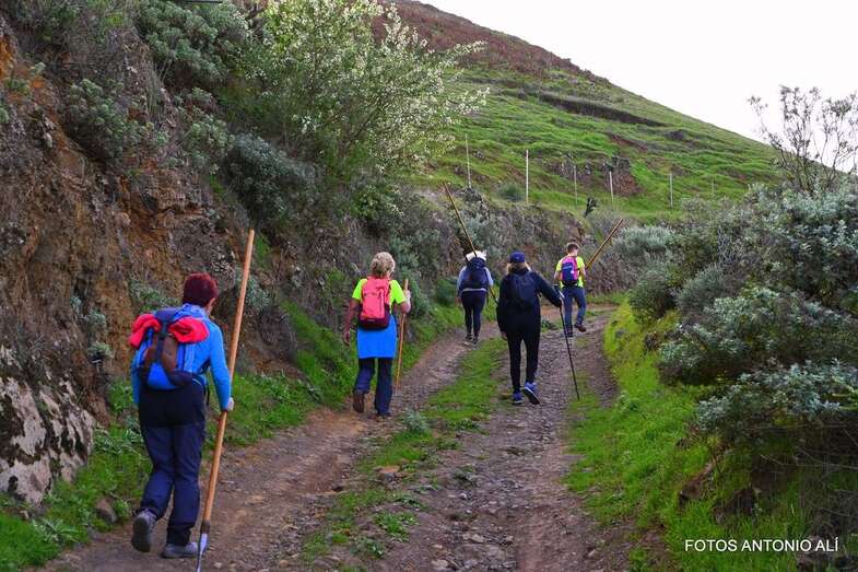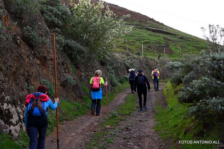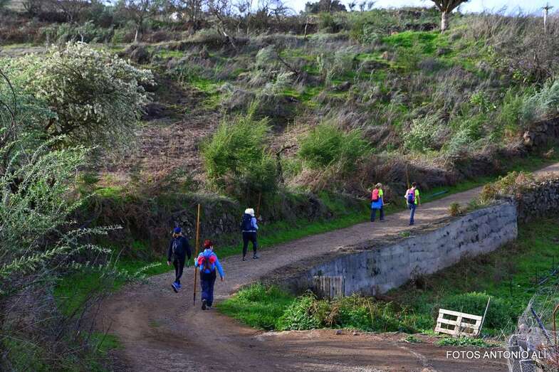 La caminata empezó en el pueblo de Montaña Alta de Guía, junto a la iglesia. Y durante los primeros cinco kilómetros discurrió por un sendero en ascenso con algunas pequeñas zona llanas hasta subir para alcanzar el Lomo Galeote o Las Trincheras, desde donde se inició el descenso por el Barranco de Pavoncillo, cogiendo la carretera de Fontanales a los Pinos de Gáldar.