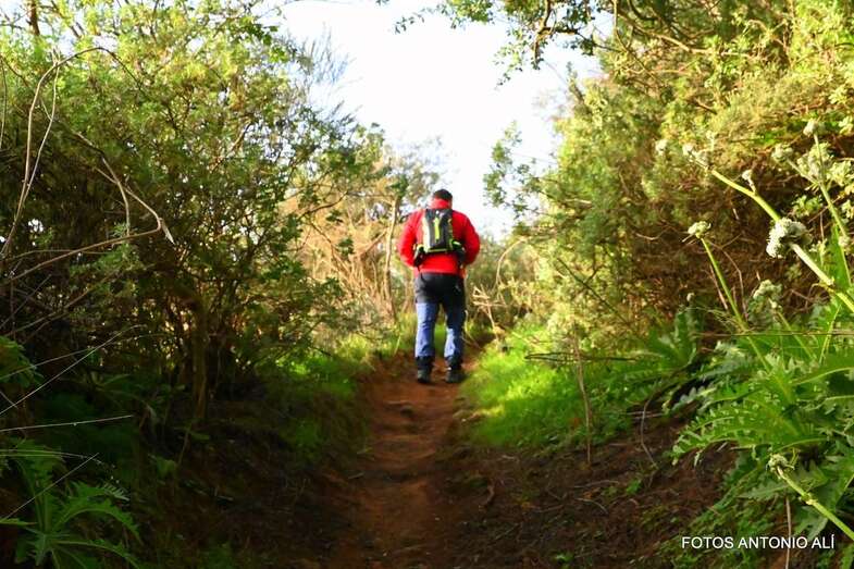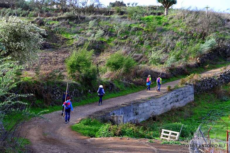 A la altura de El Gusano, el grupo se desvió hacia Hoya de La Atalaya para cruzar el barranco del Pinar en dirección a la Quesería de Pavón y descender hacia la carretera general, continuando la bajada por el barranco del Pinar hasta llegar de nuevo a Montaña Alta después de superar varios ascenso.