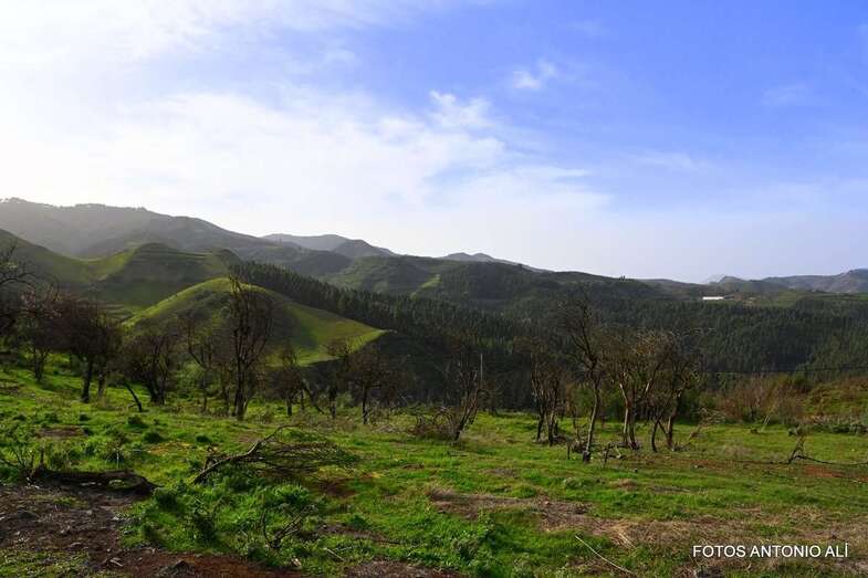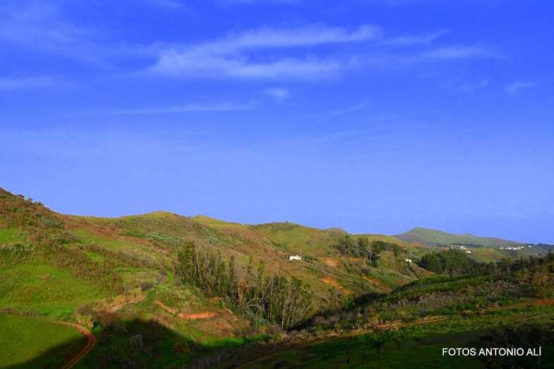 Esta ruta circular atraviesa dos espacios naturales del municipio de Guía: el Parque Rural de Doramas y el Paisaje Protegido de Cumbres, que alberga los mejores pastizales del municipio y donde se elabora el famoso queso de Guía.